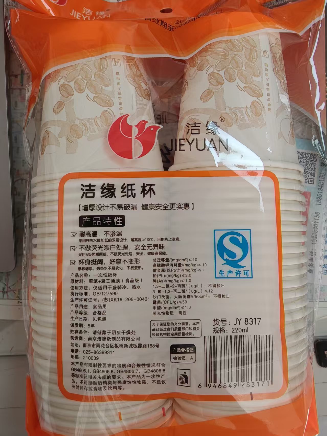日前,南京洁缘纸制品有限公司按照《消费品召回管理暂行规定》《江苏省缺陷消费品召回管理办法》的要求,主动向南京市市场监督管理局报告了召回计划,将自2025年12月29日起,召回2025年1月1日至2025年11月26日期间制造的洁缘牌JY 8317型纸杯(220ml),涉及数量为120000袋(50只/袋)。