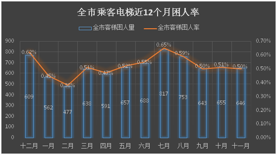 注:全市客梯困人率=每月客梯困人次数÷当月全市在用客梯总数×100%