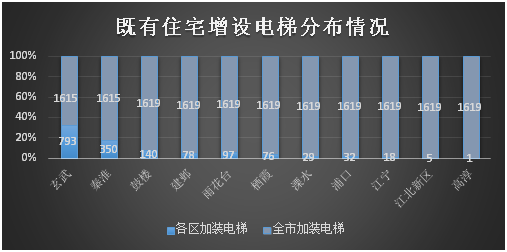 图4 南京市各行政区既有住宅增设电梯验收情况