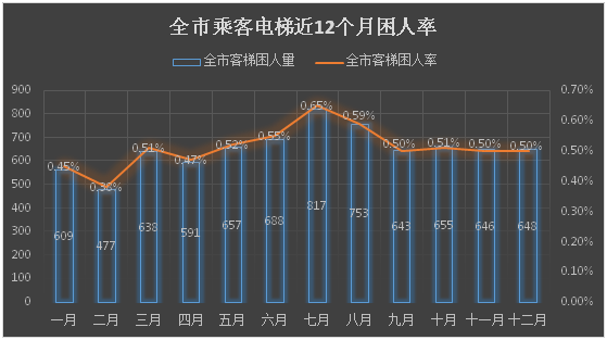 注:全市客梯困人率=每月客梯困人次数÷当月全市在用客梯总数×100%