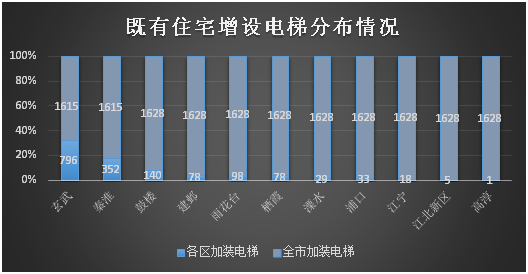 图4 南京市各行政区既有住宅增设电梯验收情况