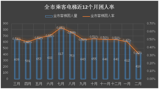 注:全市客梯困人率=每月客梯困人次数÷当月全市在用客梯总数×100%
